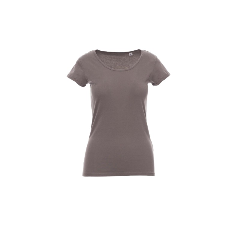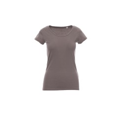 Tee-shirt cintré pour femme à manches courtes et encolure arrondie un peu ample, col avec fin liseré, finition des manches avec revers fin à bord vif, couture latérale