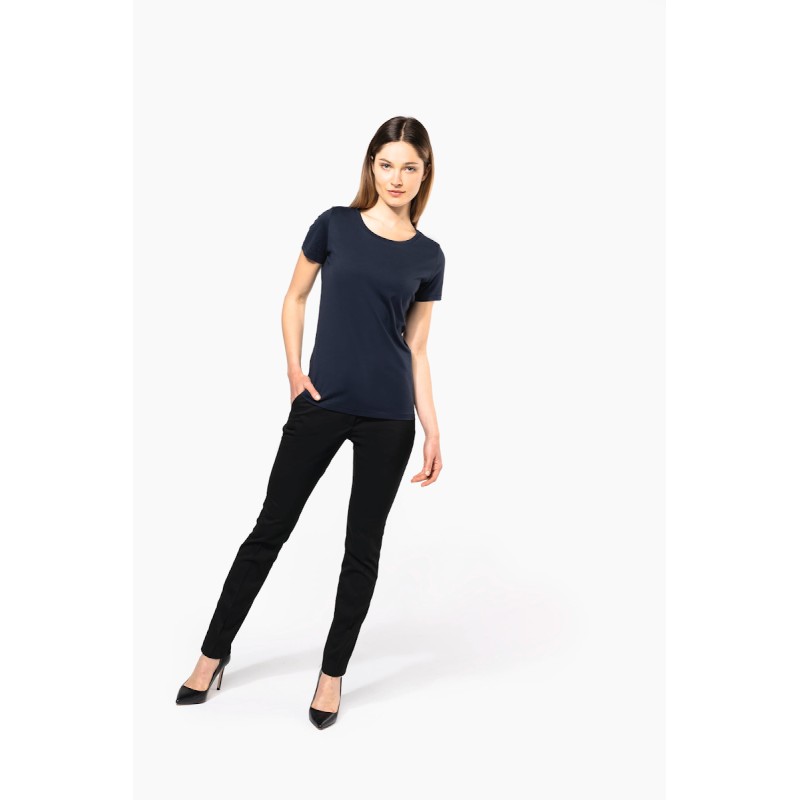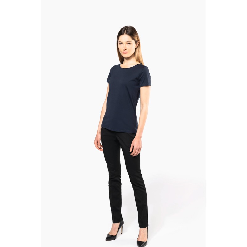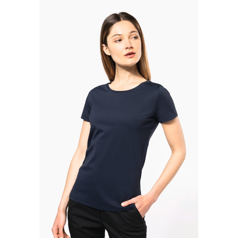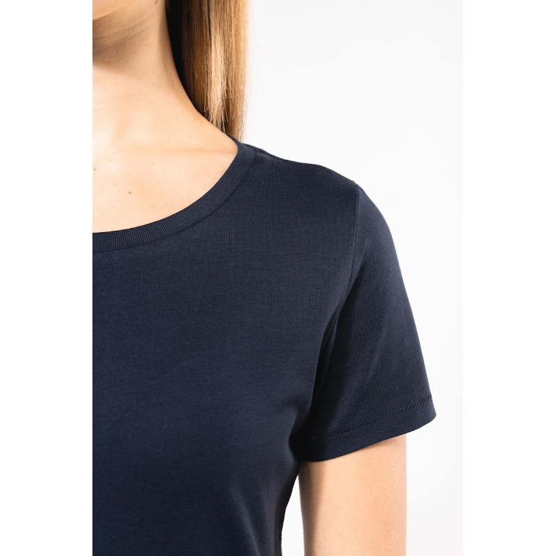 100% coton. Maille jersey en coton Supima®. Tissu d'une extrême finesse et qualité. Toucher soyeux et agréable. Coupe cintrée. Encolure ronde avec bande de propreté ton sur ton. Finitions coutures fantaisies sur bas de manches et bas de vêtement. Pas d'étiquette de marque au col, uniquement une puce de taille pour faciliter la personnalisation.