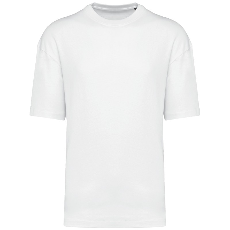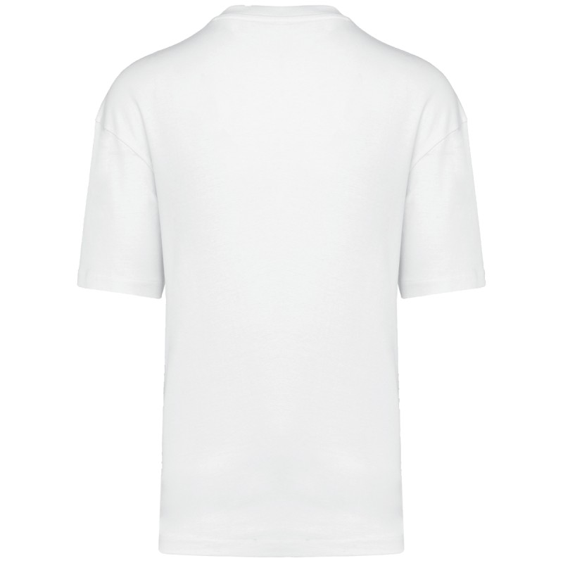 100% coton (sauf coloris Oxford Grey : 90% coton et 10% viscose). Coton cardé. Maille jersey. Coupe oversize aux épaules tombantes. Coupé cousu. Renfort épaules en silicone pour un meilleur maintien. Encolure ronde en bord côte 1x1 ton sur ton avec simple surpiqûre. Bande de propreté ton sur ton. Finition bas de manches et de vêtement simple surpiqûre. Pas d'étiquette de marque au col, uniquement une puce de taille pour faciliter la personnalisation.