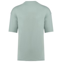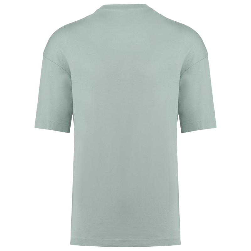 100% coton (sauf coloris Oxford Grey : 90% coton et 10% viscose). Coton cardé. Maille jersey. Coupe oversize aux épaules tombantes. Coupé cousu. Renfort épaules en silicone pour un meilleur maintien. Encolure ronde en bord côte 1x1 ton sur ton avec simple surpiqûre. Bande de propreté ton sur ton. Finition bas de manches et de vêtement simple surpiqûre. Pas d'étiquette de marque au col, uniquement une puce de taille pour faciliter la personnalisation.
