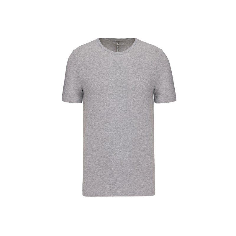 97% coton / 3% élasthanne. Pour coloris chinés: 87% Cotton / 9% Viscose / 4% Élasthanne. Encolure ronde. Finition double aiguille bas de manche et bas de vêtement. Avec sa coupe moderne et près du corps, il se rapproche des standards du prêt à porter.