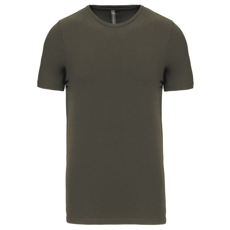 97% coton / 3% élasthanne. Pour coloris chinés: 87% Cotton / 9% Viscose / 4% Élasthanne. Encolure ronde. Finition double aiguille bas de manche et bas de vêtement. Avec sa coupe moderne et près du corps, il se rapproche des standards du prêt à porter.