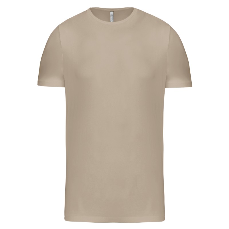 97% coton / 3% élasthanne. Pour coloris chinés: 87% Cotton / 9% Viscose / 4% Élasthanne. Encolure ronde. Finition double aiguille bas de manche et bas de vêtement. Avec sa coupe moderne et près du corps, il se rapproche des standards du prêt à porter.