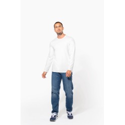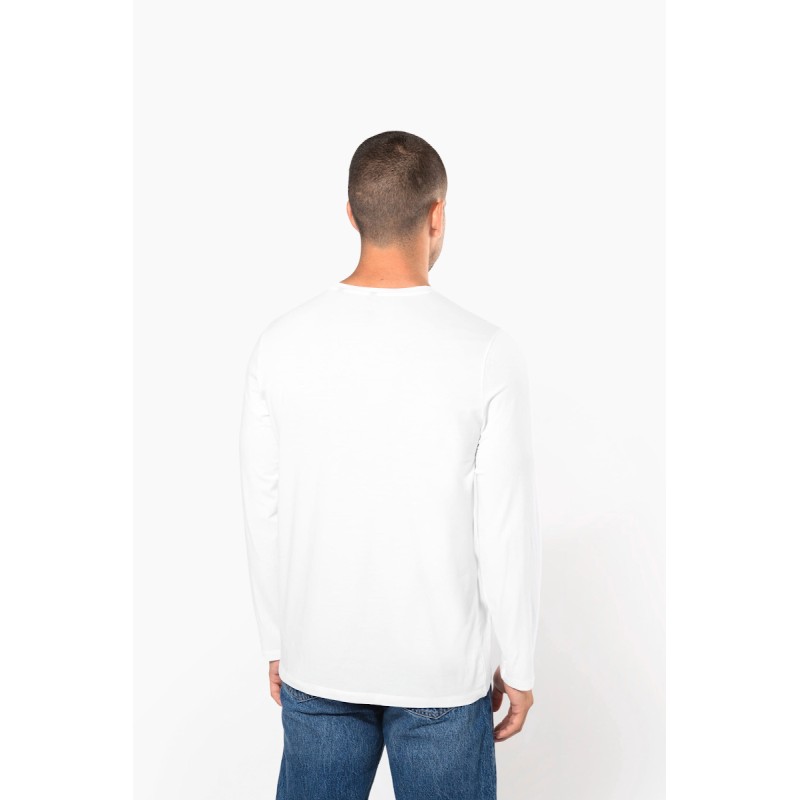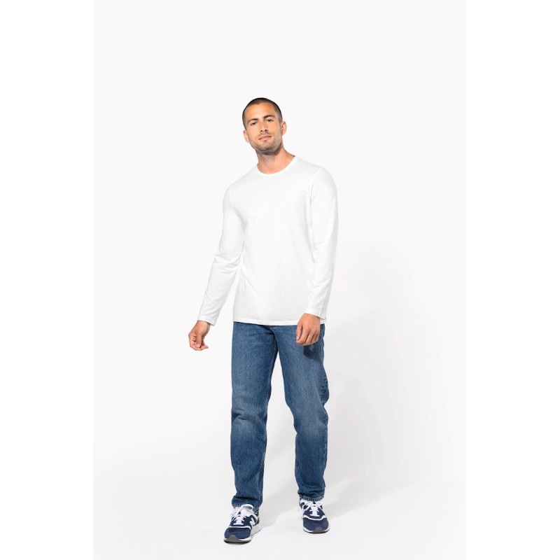 97% coton / 3% élasthanne. Coloris chinés 87% Coton / 9% Viscose / 4% Élasthanne. Encolure ronde. Finition double aiguille bas de manche et bas de vêtement. Avec sa coupe moderne et près du corps, il se rapproche des standards du prêt à porter.