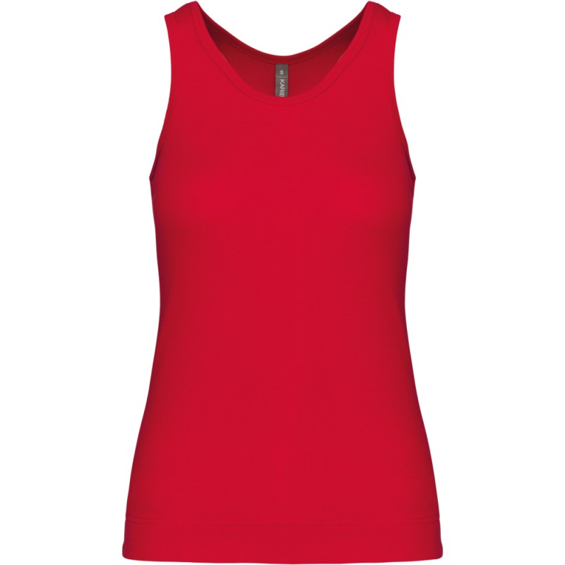 100% coton. Côte 1x1. Dos nageur. Finition double aiguille.