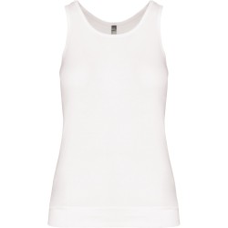 100% coton. Côte 1x1. Dos nageur. Finition double aiguille.