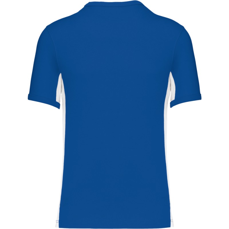 100% coton jersey. Bord-côte en coton / élasthanne à l'encolure et au bas de manche. Dessous de manches et bandes côtés contrastés. Finition double aiguille.