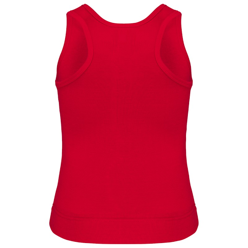 100% coton. Côte 1x1. Dos nageur. Finition double aiguille.