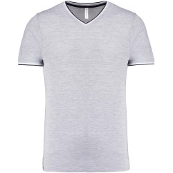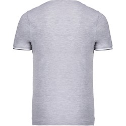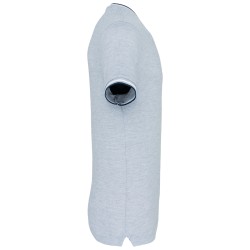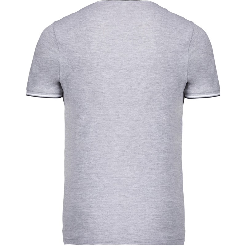 100% coton (90% coton / 10% viscose pour coloris chiné). Maille piquée en coton peigné. Finitions bord-côte avec rayures contrastées au col et bas de manches. Bande de propreté encolure et fentes latérales contrastées. Finition double aiguille au bas du vêtement.