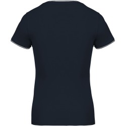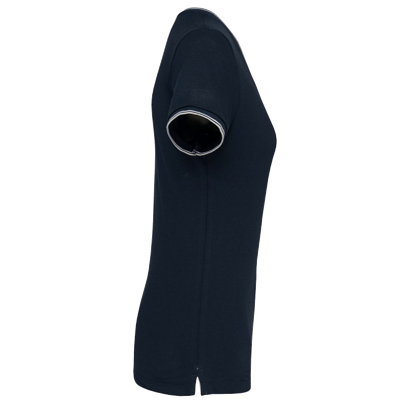 100% coton (90% coton / 10% viscose pour coloris chiné). Maille piquée en coton peigné. Finitions bord-côte avec rayures contrastées au col et bas de manches. Bande de propreté encolure et fentes latérales contrastées. Finition double aiguille au bas du vêtement.