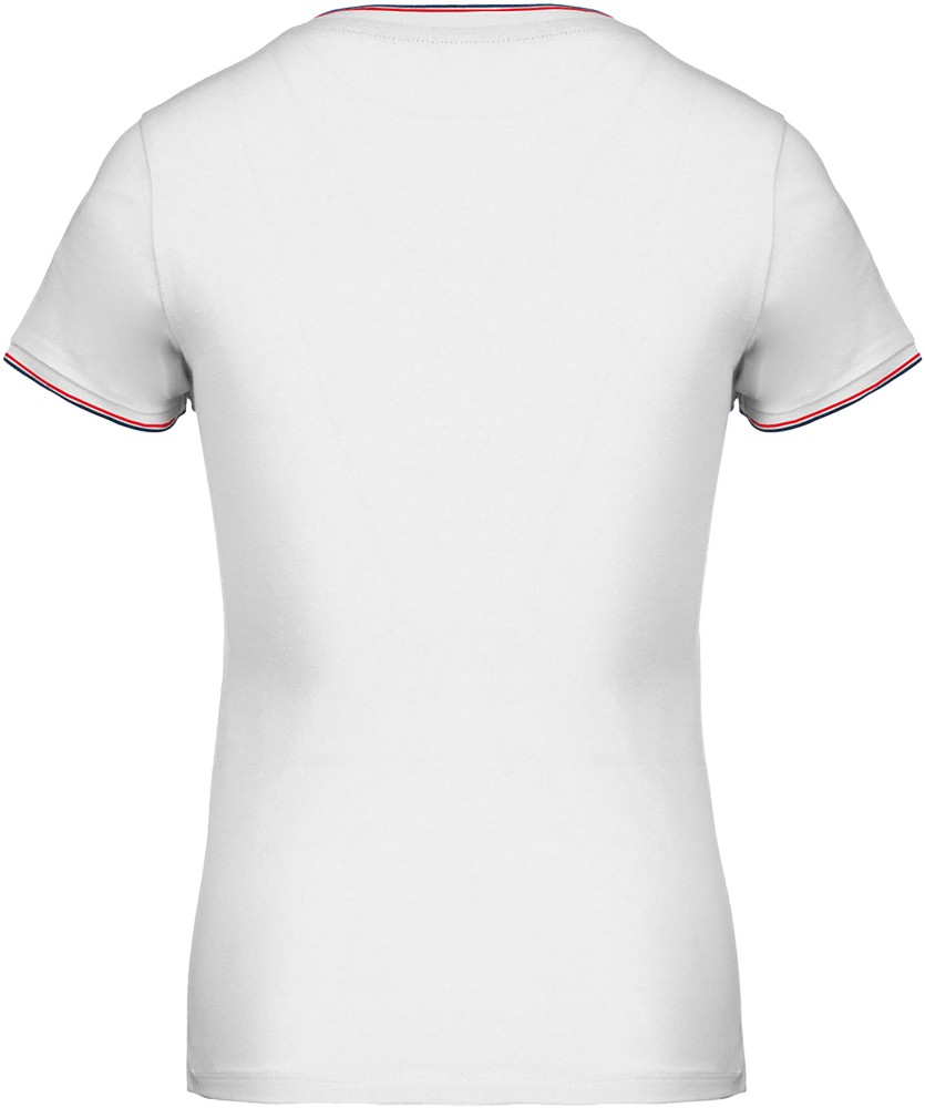 100% coton (90% coton / 10% viscose pour coloris chiné). Maille piquée en coton peigné. Finitions bord-côte avec rayures contrastées au col et bas de manches. Bande de propreté encolure et fentes latérales contrastées. Finition double aiguille au bas du vêtement.