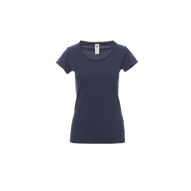 Tee-shirt pour femme à manches courtes, cintré, encolure ample, col de 1 cm à bord vif, épaules avec double couture intérieure, finition des manches avec fin revers à bord vif, coutures latérales.