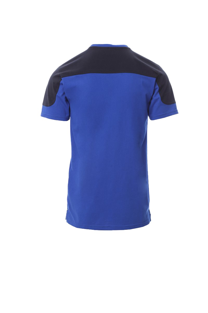 T-shirt bicolore, petite poche poitrine avec porte-stylo, coutures du col couvertes et ruban de renfort latéral.