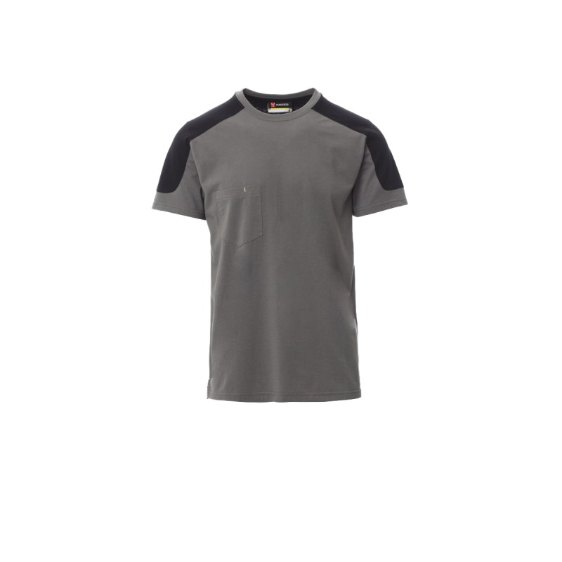 T-shirt bicolore, petite poche poitrine avec porte-stylo, coutures du col couvertes et ruban de renfort latéral.