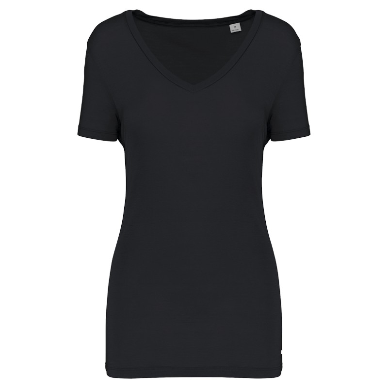 100% Lyocell TENCEL™. Coupe droite. Coutures latérales. Lavé aux enzymes. Col V en matière principale. Bande de propreté intérieure col en matière principale. Ourlet double aiguille bas de manches et bas de vêtement.