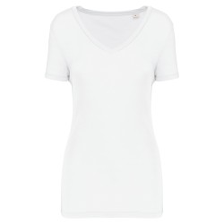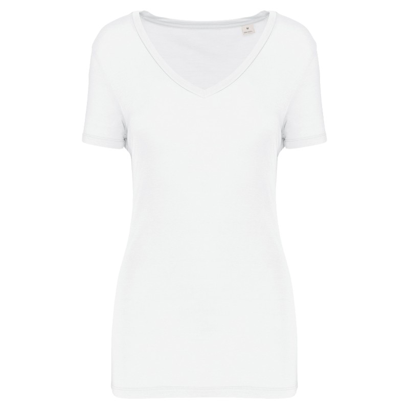 100% Lyocell TENCEL™. Coupe droite. Coutures latérales. Lavé aux enzymes. Col V en matière principale. Bande de propreté intérieure col en matière principale. Ourlet double aiguille bas de manches et bas de vêtement.