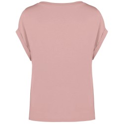 100% coton biologique. Coton peigné. Maille jersey. Lavé aux enzymes. Coupe loose avec épaules tombantes. Bas de manches à revers avec point d'arrêt pour maintenir l'effet roulotté. Renfort épaule. Encolure en bord côte 1 x 1. Finition bande de propreté intérieure en jersey ton sur ton. Finition simple surpiqûre bas de vêtement.