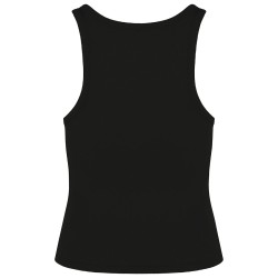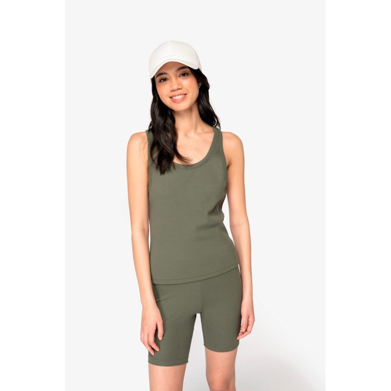 98% coton biologique / 2% élasthanne recyclé. Coton peigné. Coupe slim. Lavé aux enzymes. Matière extensible. Débardeur en côte 2 x 1. Encolure et emmanchure en colletage en matière principale et finition double surpiqûre. Ourlet simple surpiqûre bas de vêtement.