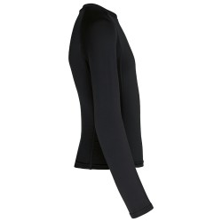 88% polyester / 12% élasthanne. Encolure ronde. Points de recouvrement ton sur ton. Finition double aiguille bas de manche et de vêtement.