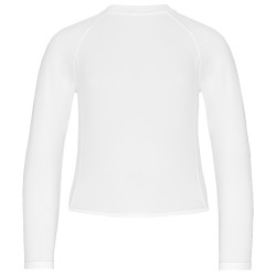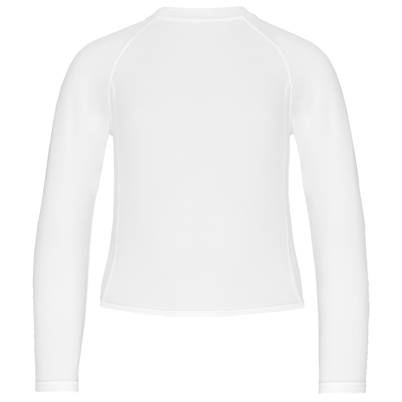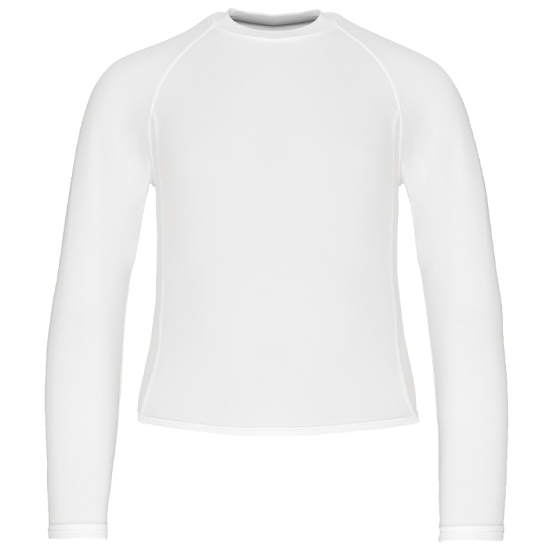 88% polyester / 12% élasthanne. Encolure ronde. Points de recouvrement ton sur ton. Finition double aiguille bas de manche et de vêtement.