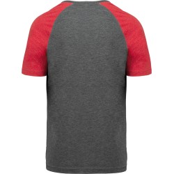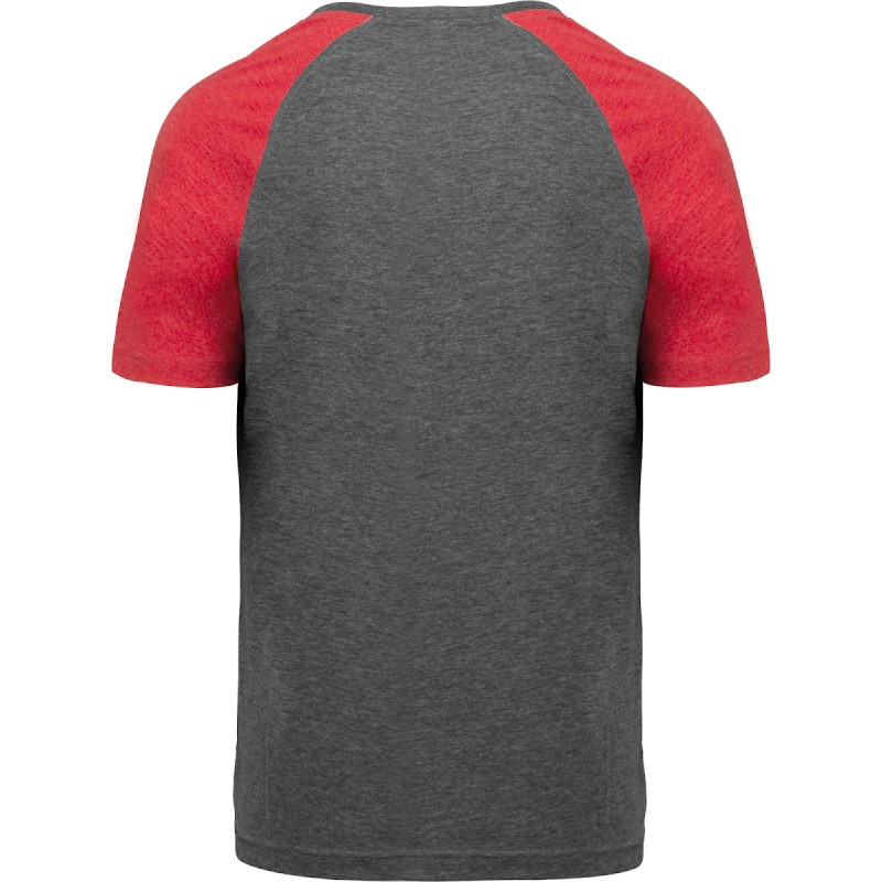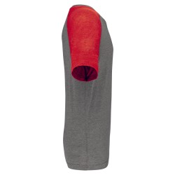 50% coton / 38% polyester / 12% viscose. Encolure ronde. Bande de propreté encolure et manches contrastés. Finition double aiguille au bas de manche et de vêtement.