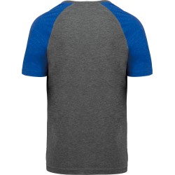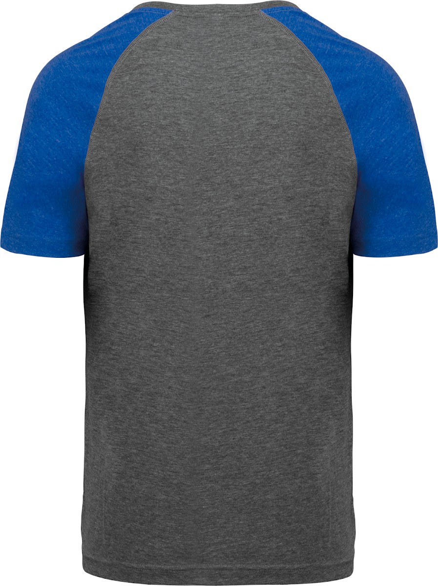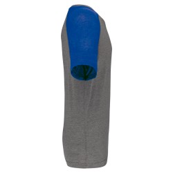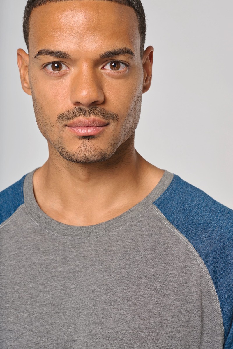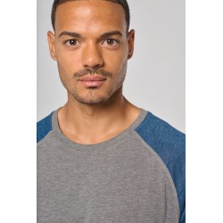 50% coton / 38% polyester / 12% viscose. Encolure ronde. Bande de propreté encolure et manches contrastés. Finition double aiguille au bas de manche et de vêtement.