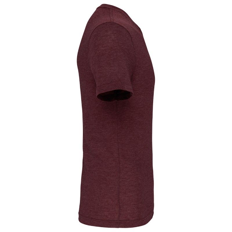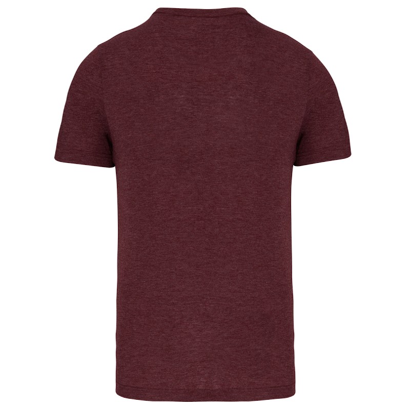50% polyester / 25% coton / 25% viscose. Tissu jersey. Bande de propreté dans le col ton sur ton. Finition double aiguille bas de manches et de vêtement. Pas d'étiquette de marque au col, uniquement une puce de taille pour faciliter la personnalisation.