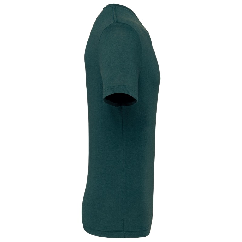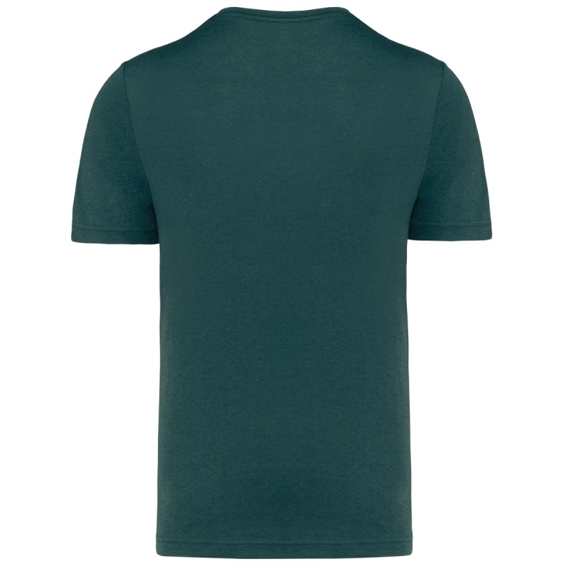 50% polyester / 25% coton / 25% viscose. Tissu jersey. Bande de propreté dans le col ton sur ton. Finition double aiguille bas de manches et de vêtement. Pas d'étiquette de marque au col, uniquement une puce de taille pour faciliter la personnalisation.