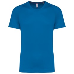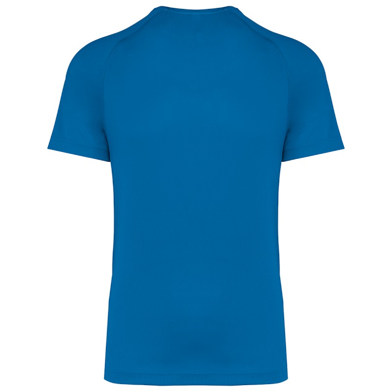 100% polyester recyclé. Tissu léger à séchage rapide. Coupe droite. Encolure ronde avec bande de propreté contrastée. Manches raglan avec surpiqûres ton sur ton. Finitions double aiguilles à l'encolure, bas de manches et de vêtement. Finition tubulaire à l'ourlet bas et bas de manche. Etiquette de marque tearaway pour faciliter la personnalisation.