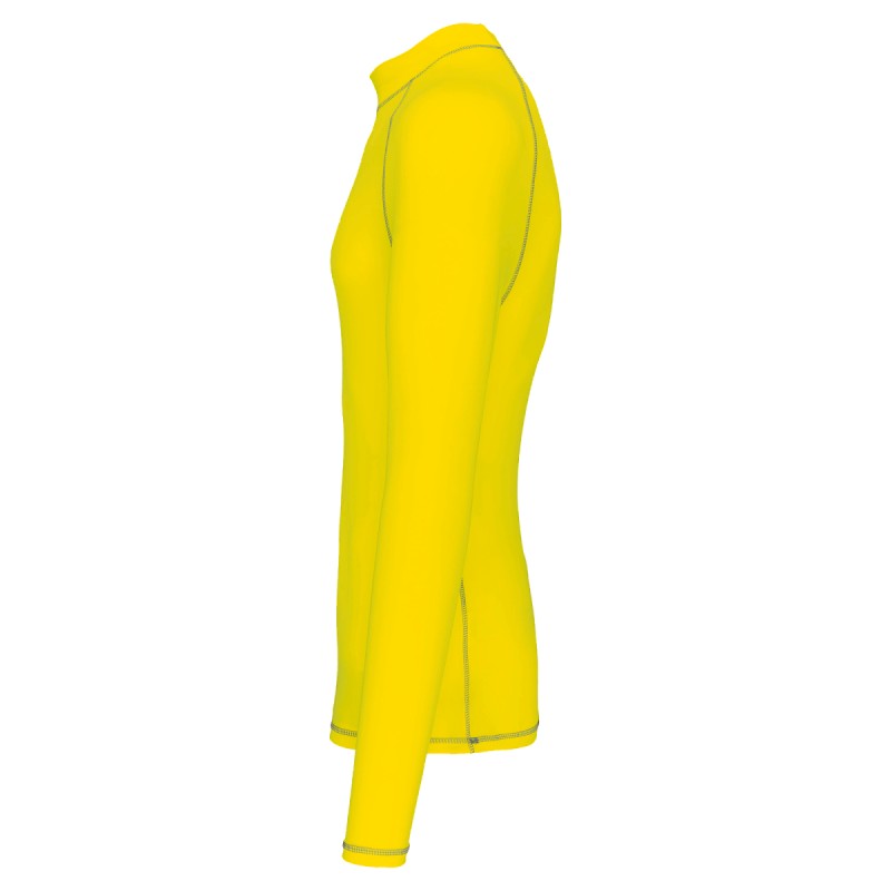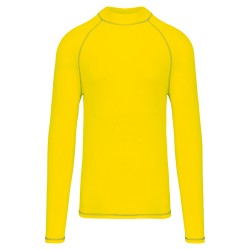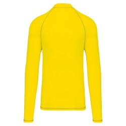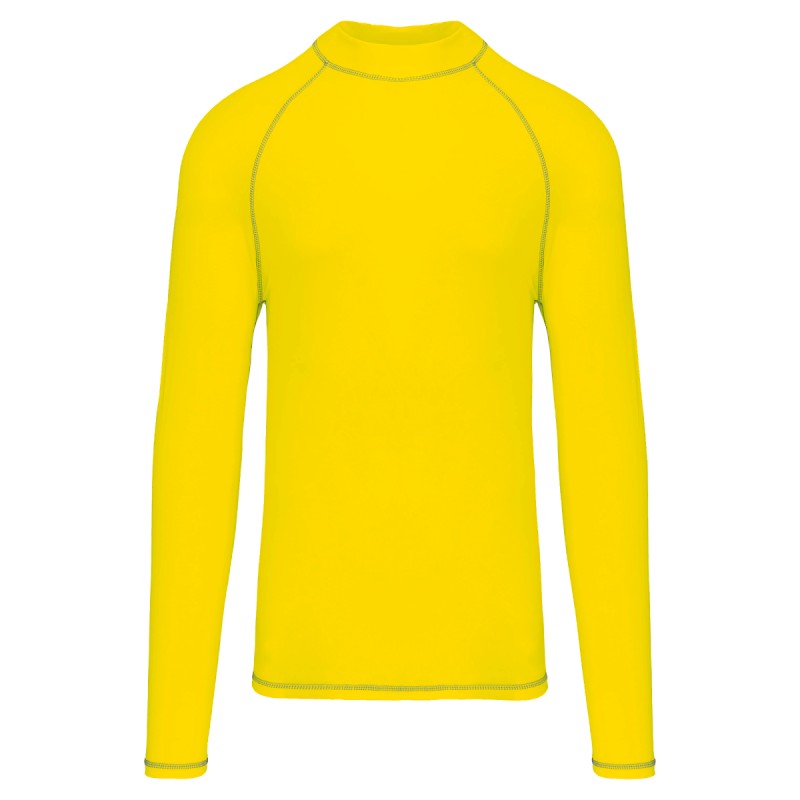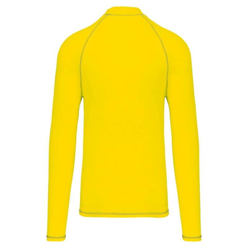 88% polyester recyclé / 12% élasthanne. Maille extensible. Coupe skinny. Protection UV50+ correspondant à la norme EN13758-1&2. Manches longues raglan avec surpiqûres contrastées. Col montant. Boucle élastique insérée dans l'ourlet devant permettant de passer le cordon du short afin de stabiliser le t-shirt. Finition double aiguilles aux manches et bas de vêtement. Etiquette de marque déchirable pour faciliter la personnalisation.