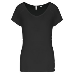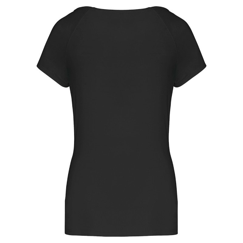 88% polyester recyclé / 12% élasthanne. Tissu au toucher doux. Coupe slim. Encolure en V avec finition colletage. Manches raglan. Point de recouvrement à l'encolure, emmanchures, bas de manches et de vêtement. Puce de taille à l'encolure. Etiquette de marque tearaway pour faciliter la personnalisation.