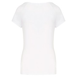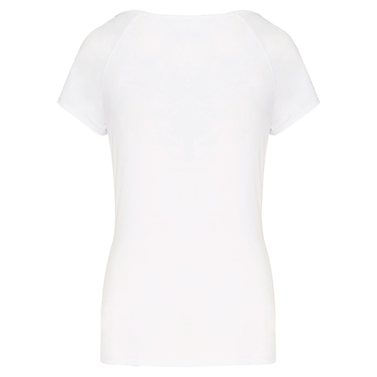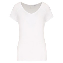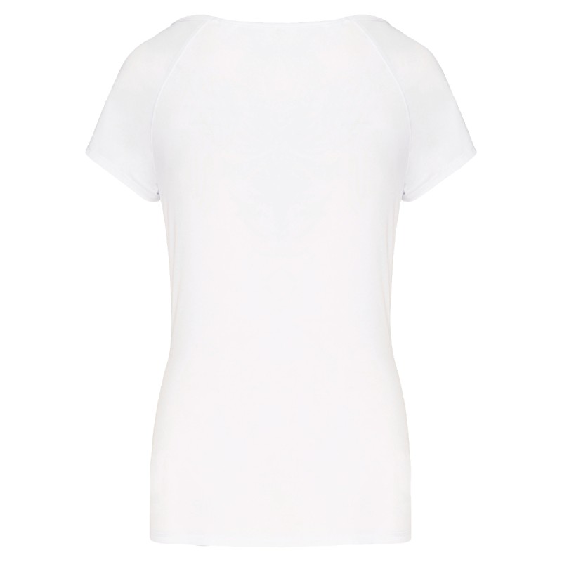 88% polyester recyclé / 12% élasthanne. Tissu au toucher doux. Coupe slim. Encolure en V avec finition colletage. Manches raglan. Point de recouvrement à l'encolure, emmanchures, bas de manches et de vêtement. Puce de taille à l'encolure. Etiquette de marque tearaway pour faciliter la personnalisation.