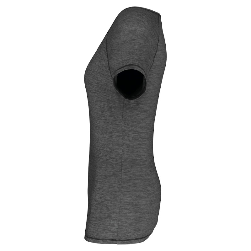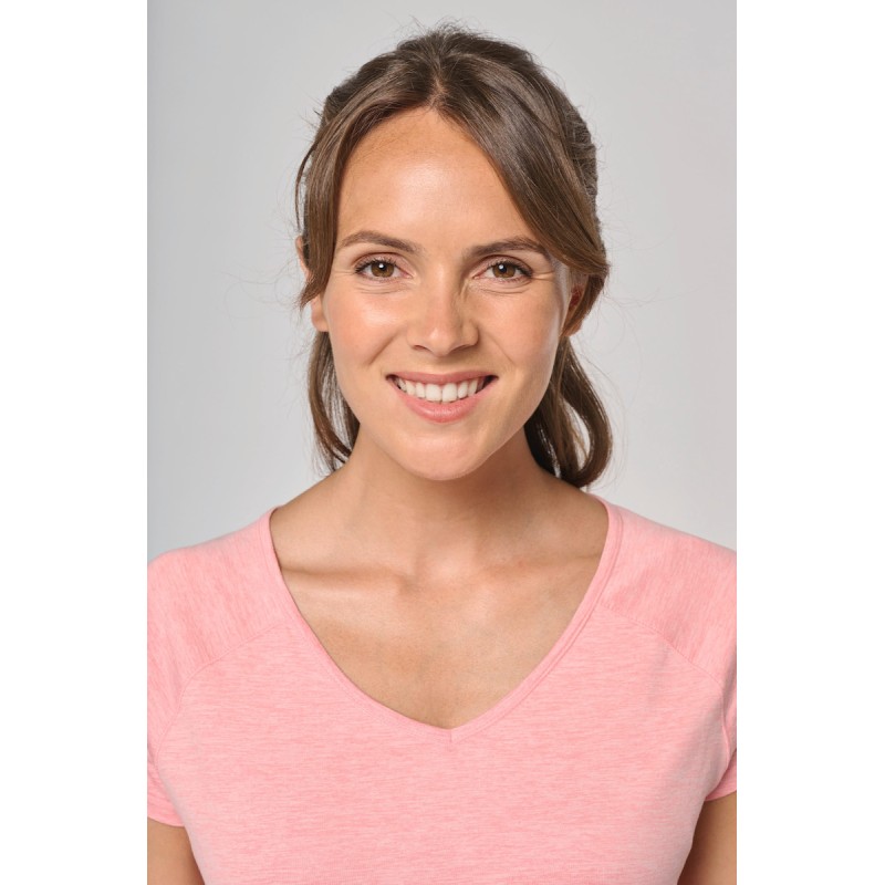 88% polyester recyclé / 12% élasthanne. Tissu au toucher doux. Coupe slim. Encolure en V avec finition colletage. Manches raglan. Point de recouvrement à l'encolure, emmanchures, bas de manches et de vêtement. Puce de taille à l'encolure. Etiquette de marque tearaway pour faciliter la personnalisation.