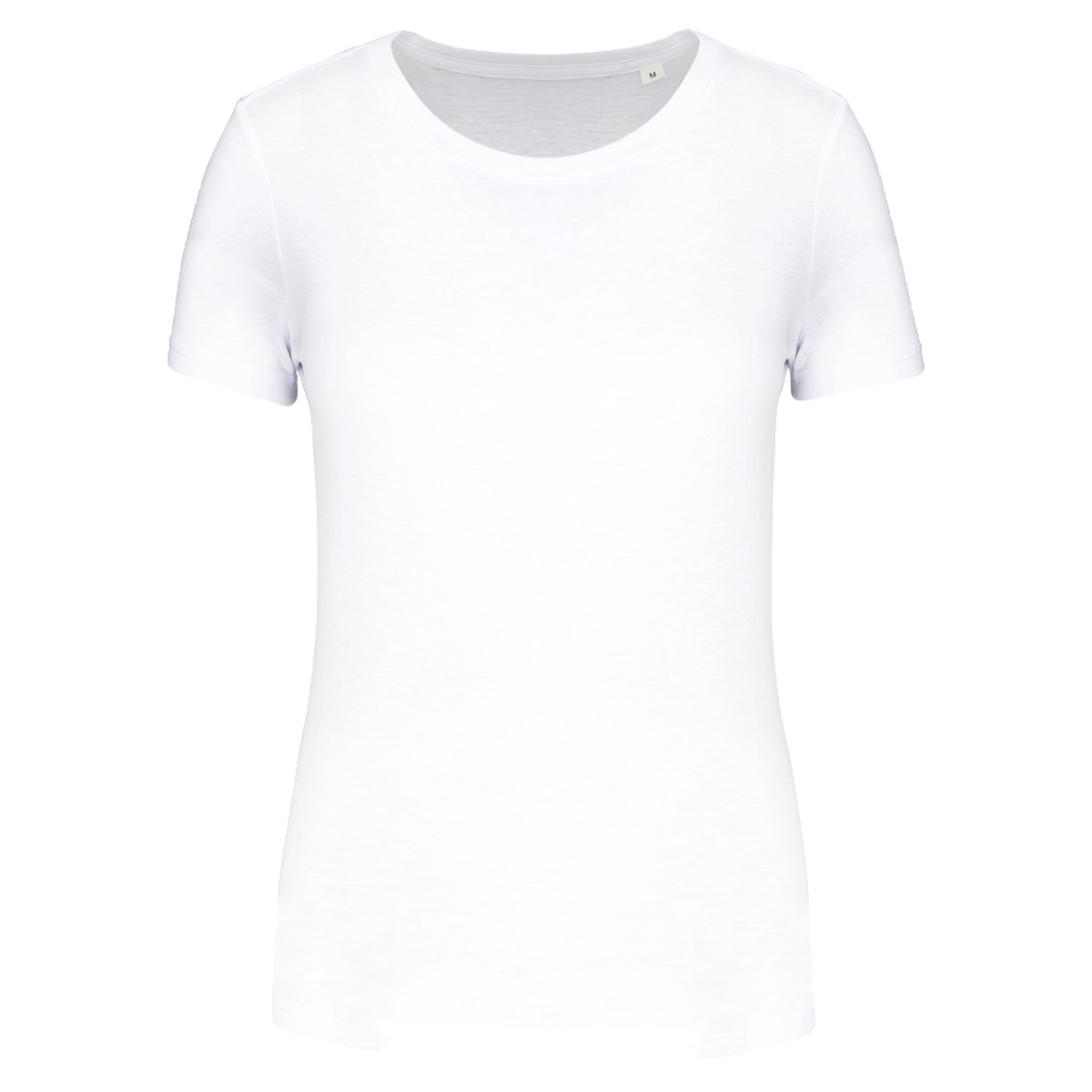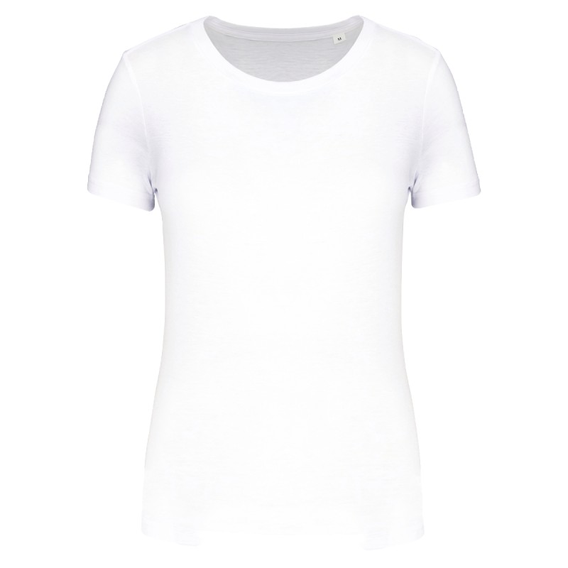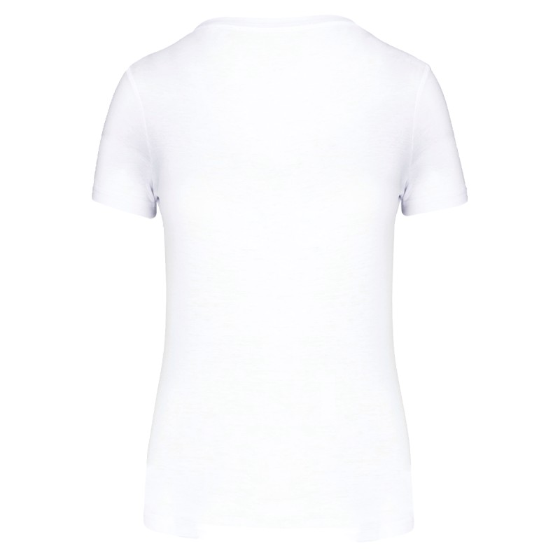 50% polyester / 25% coton / 25% viscose. Tissu jersey. Traitement antiboulochage. Encolure ronde. Coupe droite. Bande de propreté épaule-encolure dos-épaule en ton sur ton. Finition double aiguille bas de manches et de vêtement. Finition tubulaire à l'ourlet bas et bas de manche. Pas d'étiquette de marque au col, uniquement une puce de taille pour faciliter la personnalisation. (Exemple de marquage, vendu vierge).