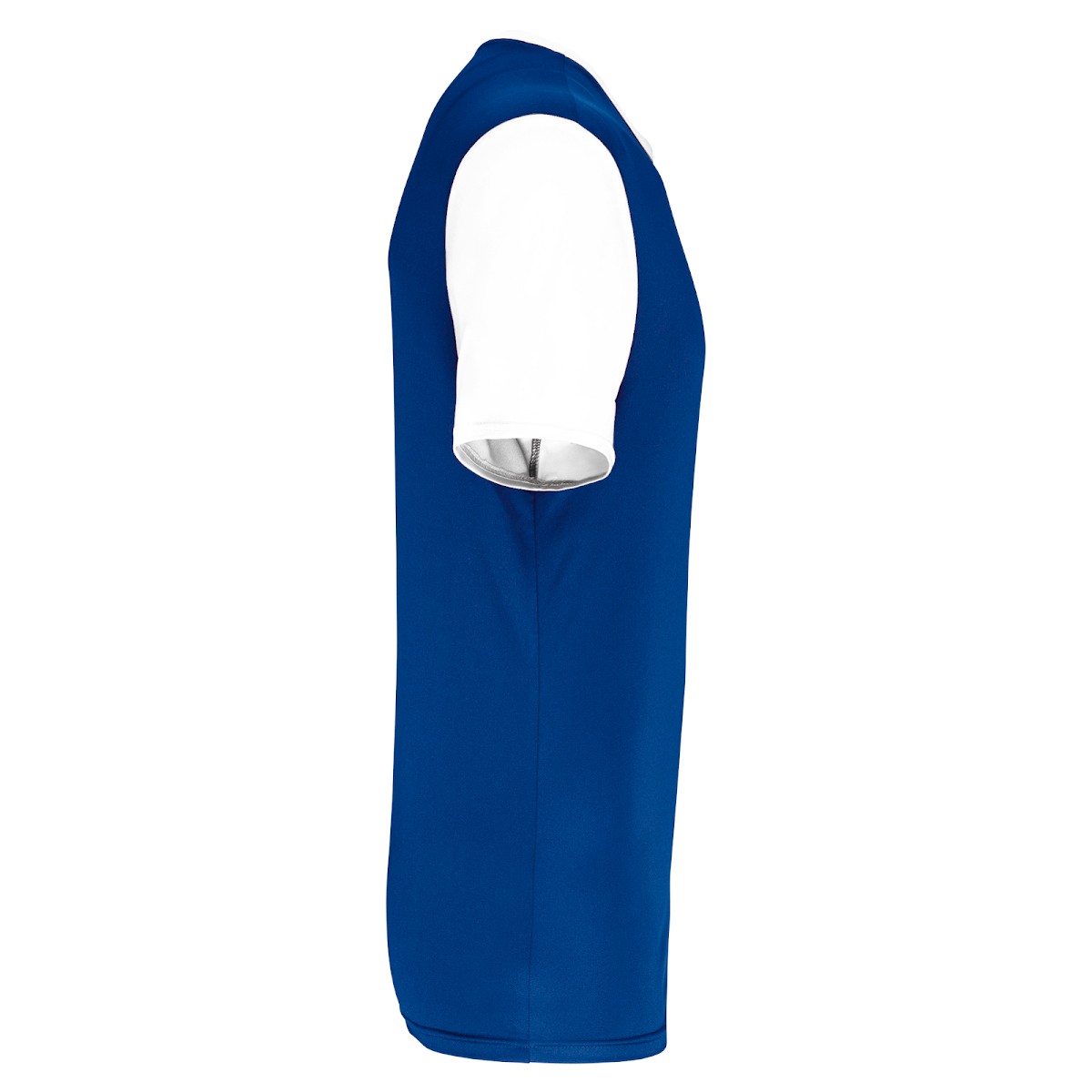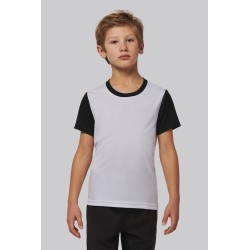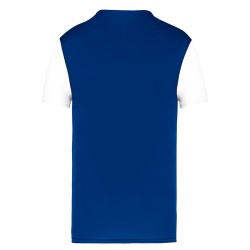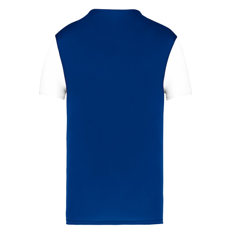 100% polyester. Maille interlock. Coupe droite. Encolure ronde contrastée et bande de propreté. Manches droites contrastées. Finitions double aiguille au bas de manches et de vêtement.