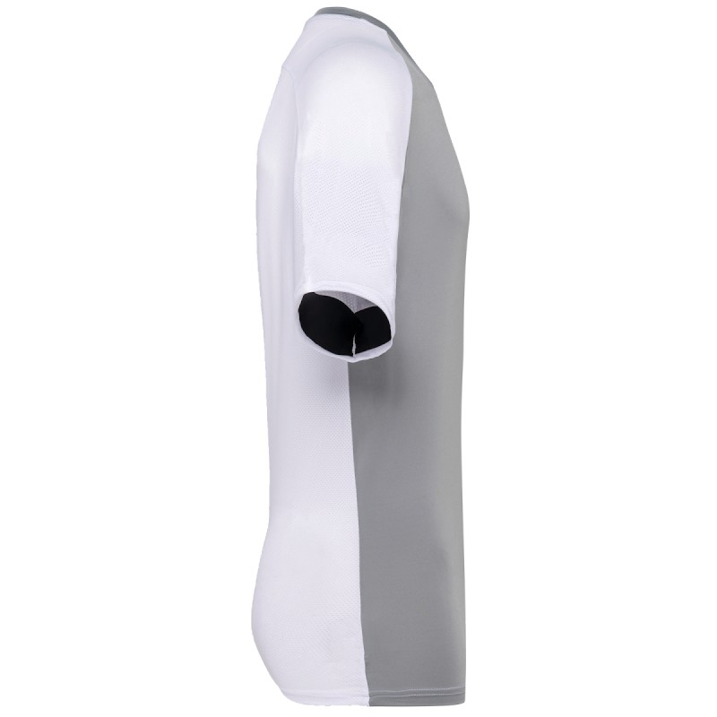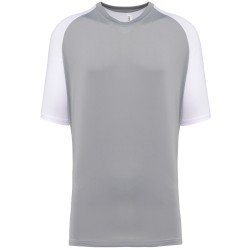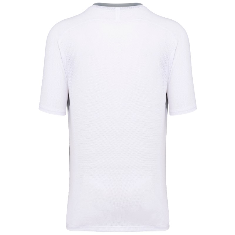 90% polyester/ 10% élasthanne. Partie birdseye : 92% polyester/ 8% élasthanne. Panneaux contrastés en maille "birdseye". Coupe ajustée. Manches raglan. Encolure ronde maille jersey avec montage d'un insert ton sur ton devant col. Bande de propreté jersey ton sur ton. Panneaux contrastés (ou unis pour le coloris Black) en maille birdseye sur les côtés, manches et dos. Finition double aiguille bas de manches et de vêtement. Etiquette de marque Tear-away.