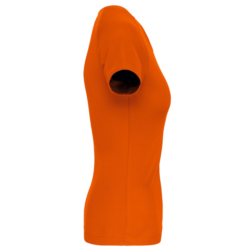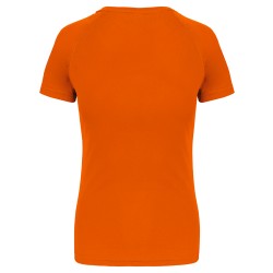 100% polyester. Tissu léger à séchage rapide. Encolure ronde avec bande de propreté. Manches raglan avec points de recouvrement. Finition double aiguille à l'encolure, bas de manches et de vêtement.