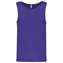 100% polyester. Tissu léger à séchage rapide. Biais à l'encolure et aux emmanchures. Finition double aiguille au bas du vêtement.