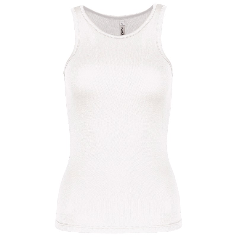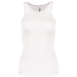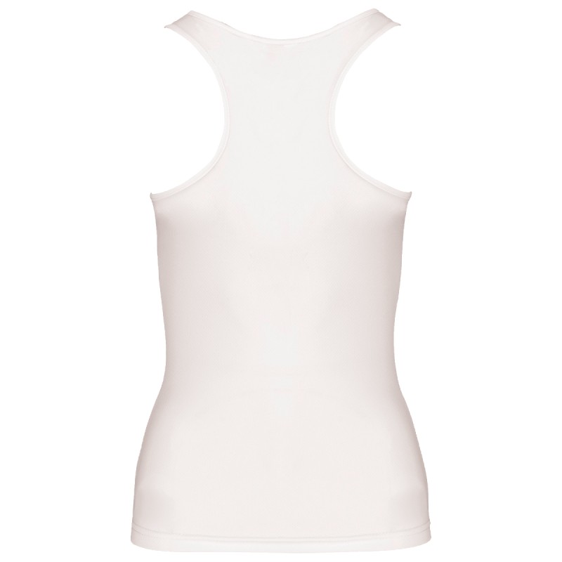 100% polyester. Tissu léger à séchage rapide. Dos nageur. Biais à l'encolure et aux emmanchures. Finition double aiguille au bas du vêtement.