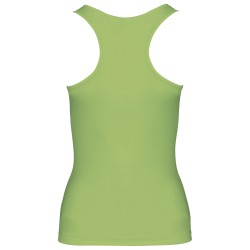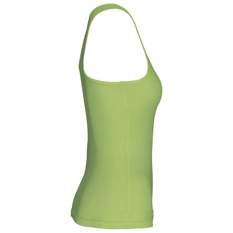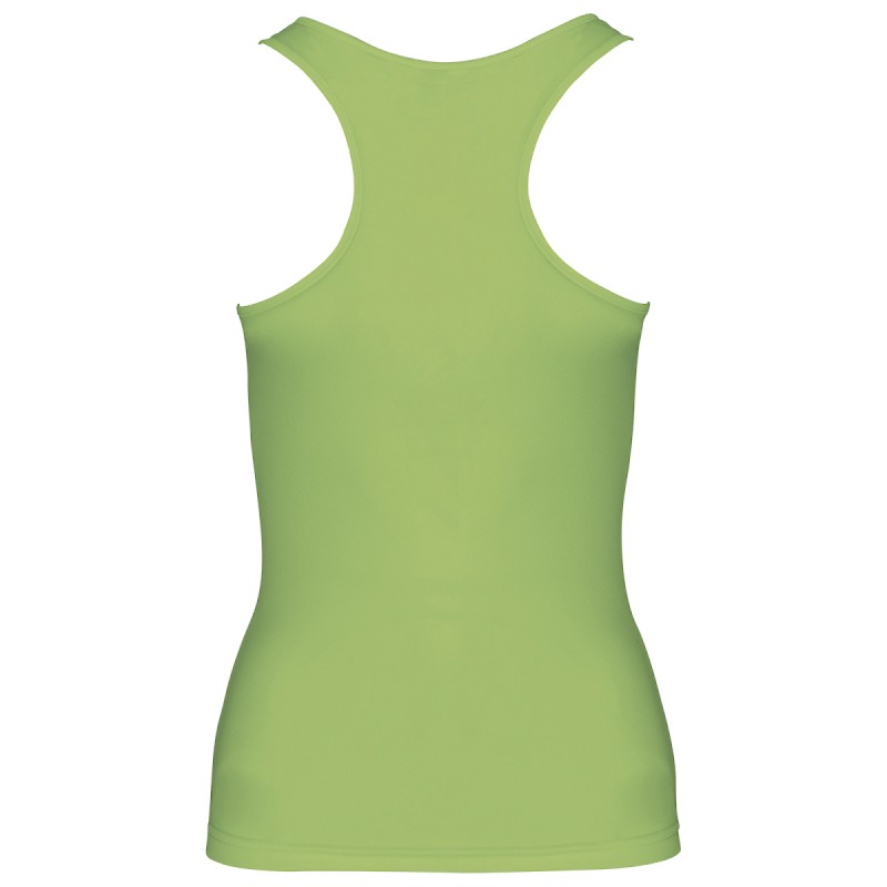 100% polyester. Tissu léger à séchage rapide. Dos nageur. Biais à l'encolure et aux emmanchures. Finition double aiguille au bas du vêtement.
