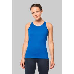 100% polyester. Tissu léger à séchage rapide. Dos nageur. Biais à l'encolure et aux emmanchures. Finition double aiguille au bas du vêtement.