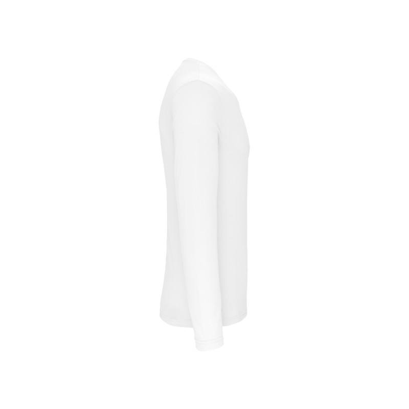 100% polyester. Tissu léger à séchage rapide. Encolure ronde avec bande de propreté. Finition double aiguille à l'encolure, aux emmanchures, bas de manche et de vêtement.