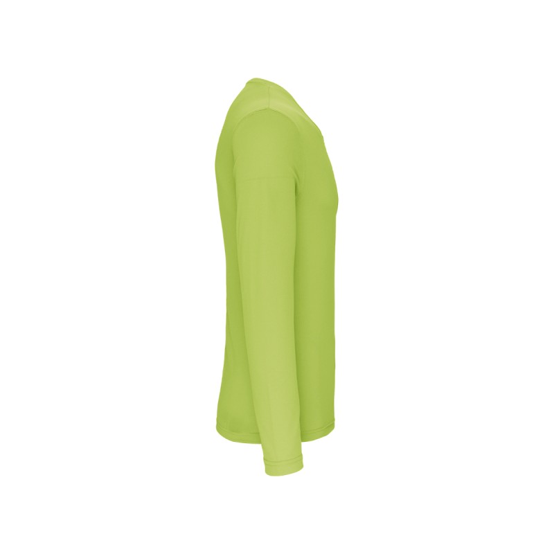 100% polyester. Tissu léger à séchage rapide. Encolure ronde avec bande de propreté. Finition double aiguille à l'encolure, aux emmanchures, bas de manche et de vêtement.