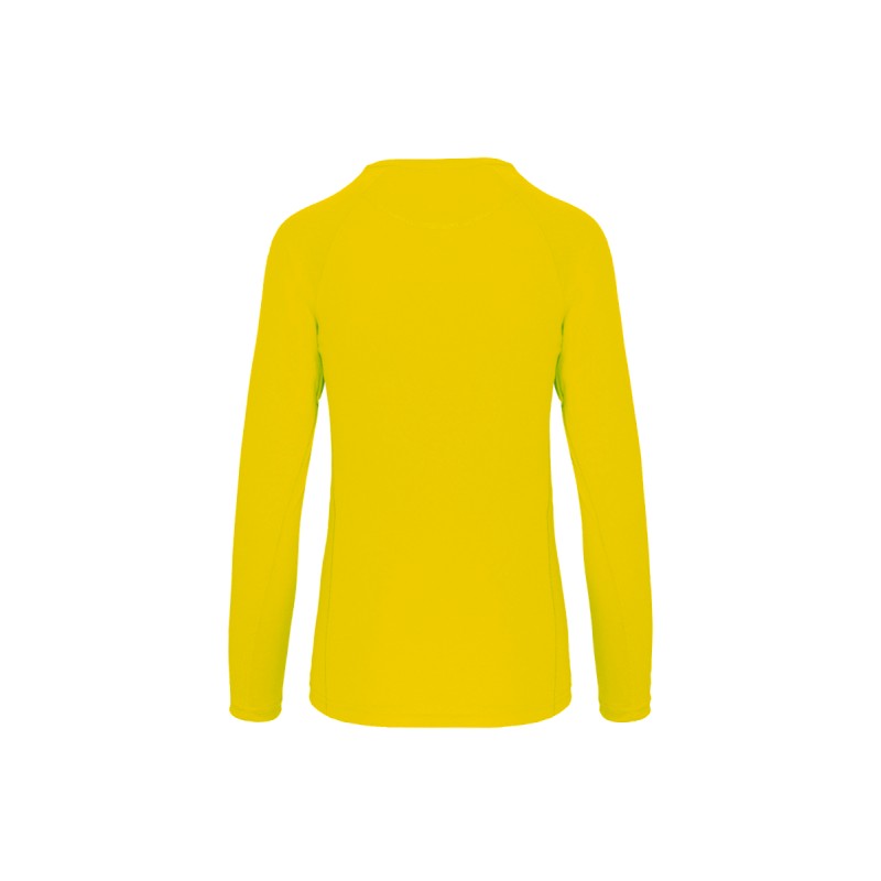 100% polyester. Tissu léger à séchage rapide. Encolure ronde avec bande de propreté. Manche raglan. Points de recouvrement sur les emmanchures et découpes. Finition double aiguille à l'encolure, bas de manche et de vêtement.