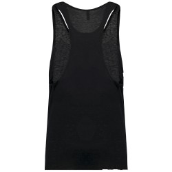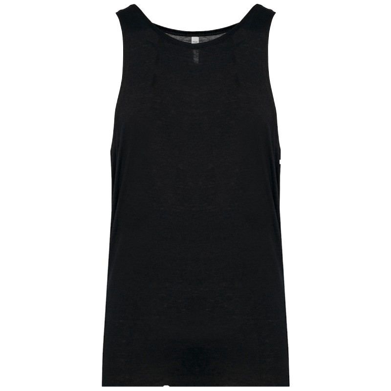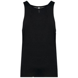 50% polyester/ 25% coton/ 25% viscose. Coupe près du corps. Encolure ronde. Dos échancré. Finition double aiguille à l'emmanchure et bas de vêtement. (Exemple de marquage, vendu vierge).