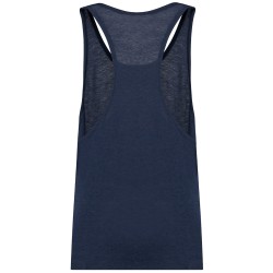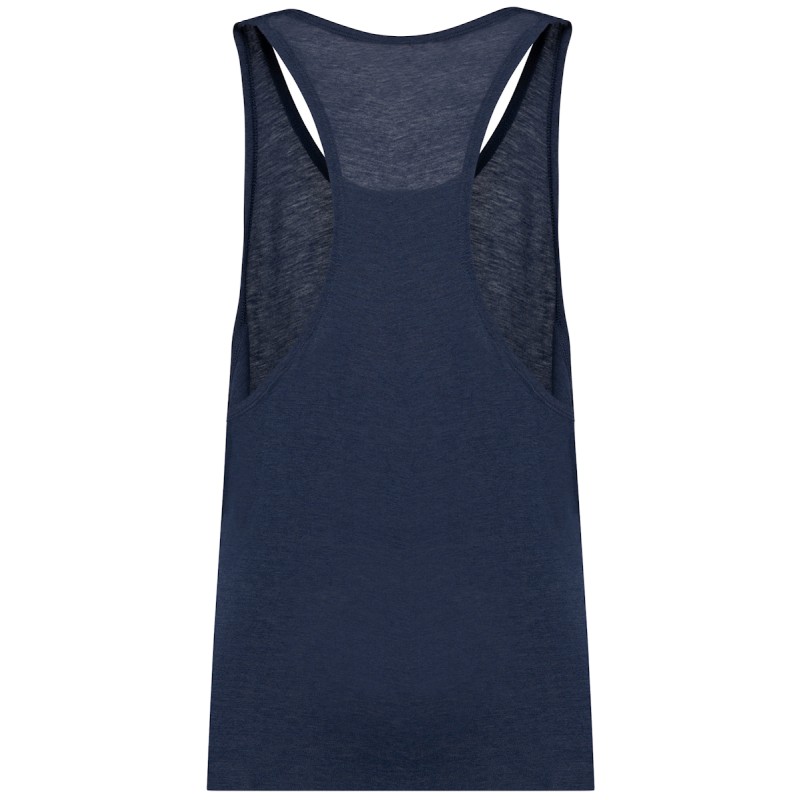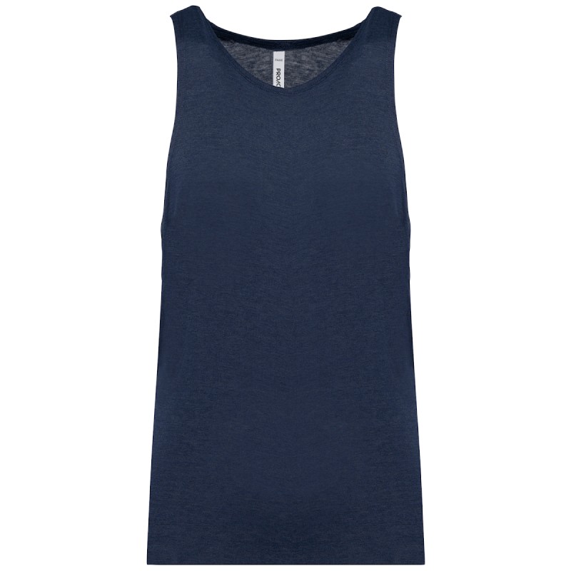 50% polyester/ 25% coton/ 25% viscose. Coupe près du corps. Encolure ronde. Dos échancré. Finition double aiguille à l'emmanchure et bas de vêtement. (Exemple de marquage, vendu vierge).