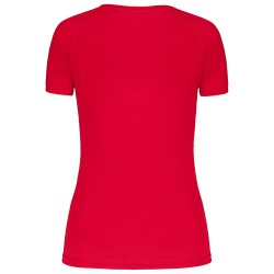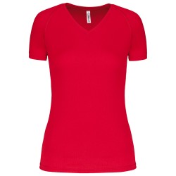100% polyester. Tissu à séchage rapide. Encolure en V avec bande de propreté. Manches raglan avec points de recouvrement. Finition double aiguille bas de manches et de vêtement.