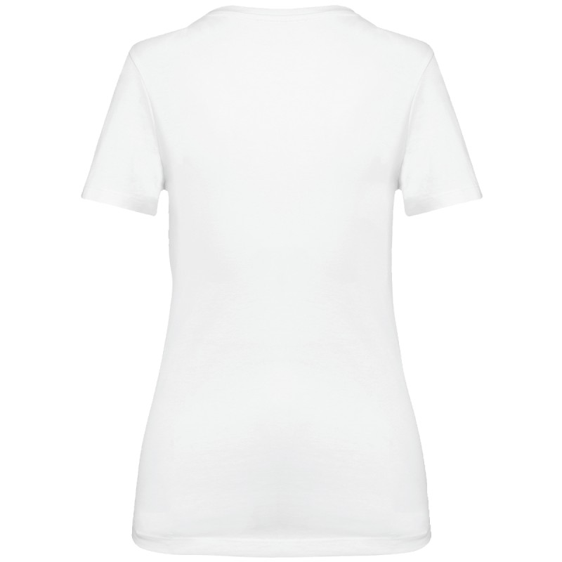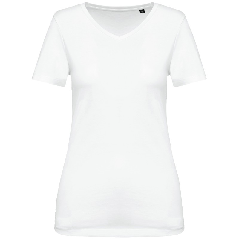 100% coton. Maille en coton peigné Supima®. Tissu jersey d'une grande finesse et de qualité supérieure. Toucher doux et soyeux. Construction coupée cousue. Encolure col V avec bande de propreté ton sur ton. Renfort de la couture épaule avec une bande siliconée. Finition bas de manches et bas de vêtement avec ourlet double surpiqûre. Pas d'étiquette de marque au col, uniquement une puce de taille pour faciliter la personnalisation.