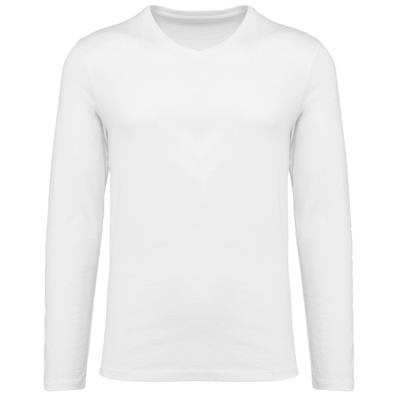 100% coton. Maille en coton peigné Supima®. Tissu jersey d'une grande finesse et de qualité supérieure. Toucher doux et soyeux. Construction coupée cousue. Encolure col V avec bande de propreté ton sur ton. Renfort de la couture épaule avec une bande siliconée. Finition bas de manches et bas de vêtement avec ourlet double surpiqûre. Pas d'étiquette de marque au col, uniquement une puce de taille pour faciliter la personnalisation.
