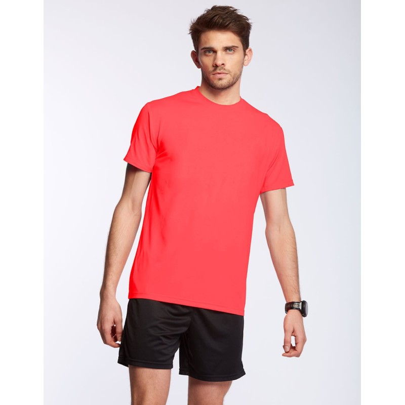 T-Shirt technique homme à col rond en matière polyester interlock 140 g/m². Manches droites. Coupe cintrée. Matière très souple. Technologie Active Fit System : évacuation de la transpiration, respirabilité accentuée. Disponible sur stock et livré sous 24/48h sans personnalisation, coloris disponibles : Atoll (Ciel) dans les tailles 2XL